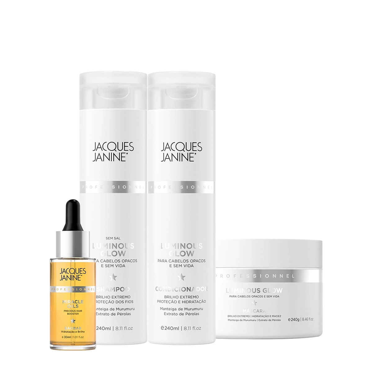 Kit Jacques Janine Professionnel Luminous Glow Shampoo Condicionador Máscara e Miracle Oils Baobab (4 produtos)