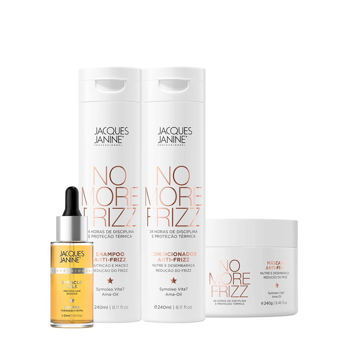 Kit Jacques Janine Professionnel No More Frizz Shampoo Condicionador Máscara e Oils Baobab (4 produtos)