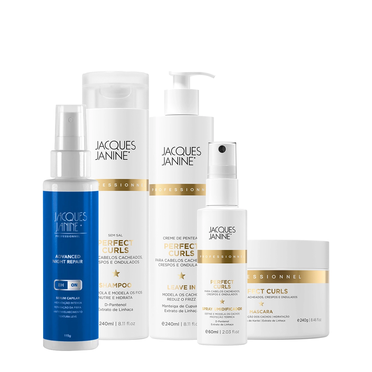 Kit Jacques Janine Professionnel Perfect Curls Shampoo Leave-in Spray Máscara e Night Sérum (5 produtos)