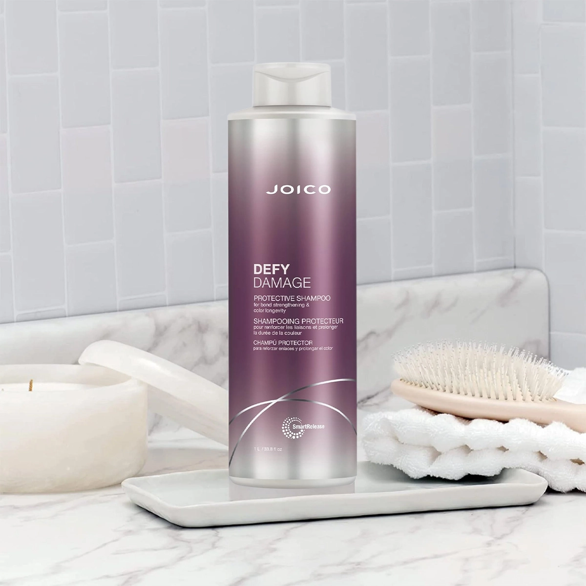 Joico Defy Damage Protective - Shampoo 1L: produz uma espuma luxuosa que higieniza de maneira extremamente delicada, sem desgastar a cor. Joico Defy Damage Protective - Condicionador 1L: fortalece a estrutura capilar ao mesmo tempo em resgata toda a hidratação e protege de agressões externas. Atribui muito mais brilho e maleabilidade sem deixar o toque pesado. Joico Defy Damage Protective - Máscara 150ml: máscara para todos os tipos de cabelo, principalmente os com coloração. Fortalece a estrutura do fio para evitar danos e quebras. Tem ação profunda que protege o tom do desbotamento e mantém a maciez, o brilho e movimento. Joico Defy Damage Protective Shield - Leave-in 100ml: para todos os cabelos, principalmente os coloridos. Leave-in Joico Defy Damage Protective Shield protege contra todas as agressões diárias que danificam o fio, como a poluição, ferramentas térmicas e radiação solar, que enfraquecem a fibra e desbotam a cor. Conselho de AplicaçãoKit Joico Defy Damage Salon Máscara 150 Protective (4 produtos)