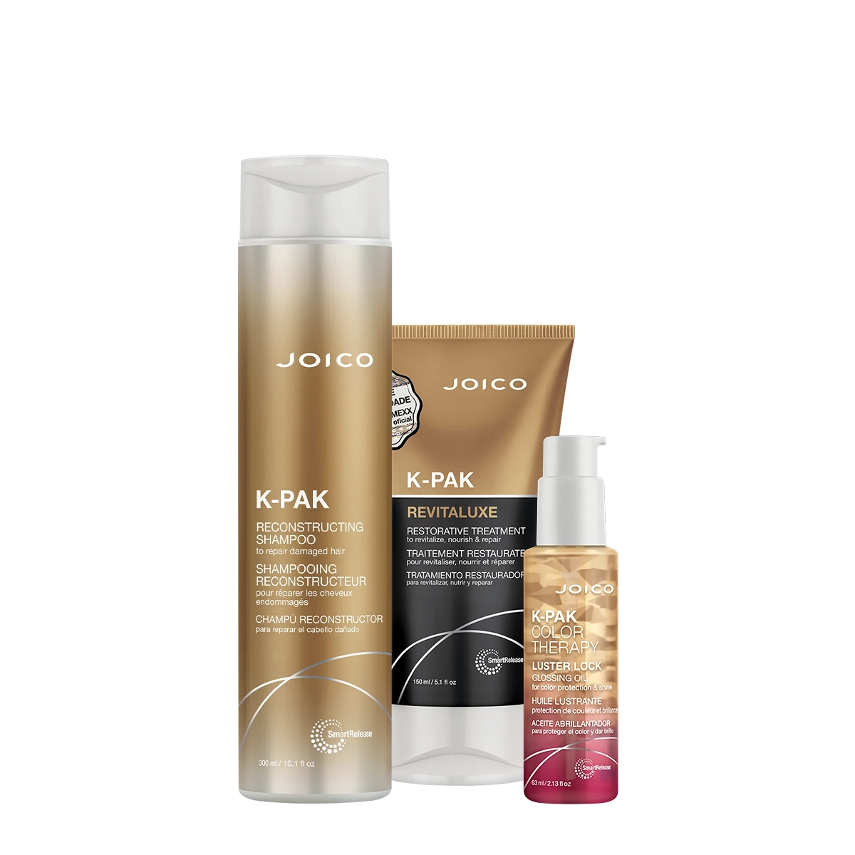 Kit Joico K-PAK Reconstrutor Revitaluxe Luster Shampoo Máscara Oil (3 produtos)