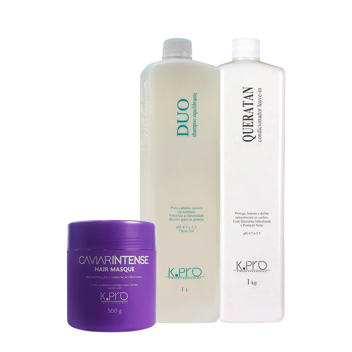Kit K.Pro Duo Equilibrante Shampoo 1l Queratan Condicionador Leave-in 1kg e Caviar Máscara Grande (3 produtos)