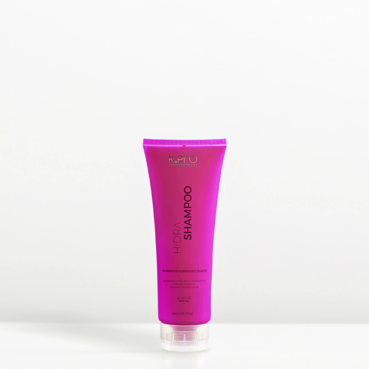 K.Pro Hidra Profissional - Shampoo sem Sal 240ml: shampoo hidratante de uso diário para todos os tipos de cabelo, especialmente os sensibilizados. Limpa suavemente e não pesa nos fios. Sua fórmula sem sal devolve a força e estrutura aos fios danificados sendo ideal para cabelos que passaram por processos químicos.