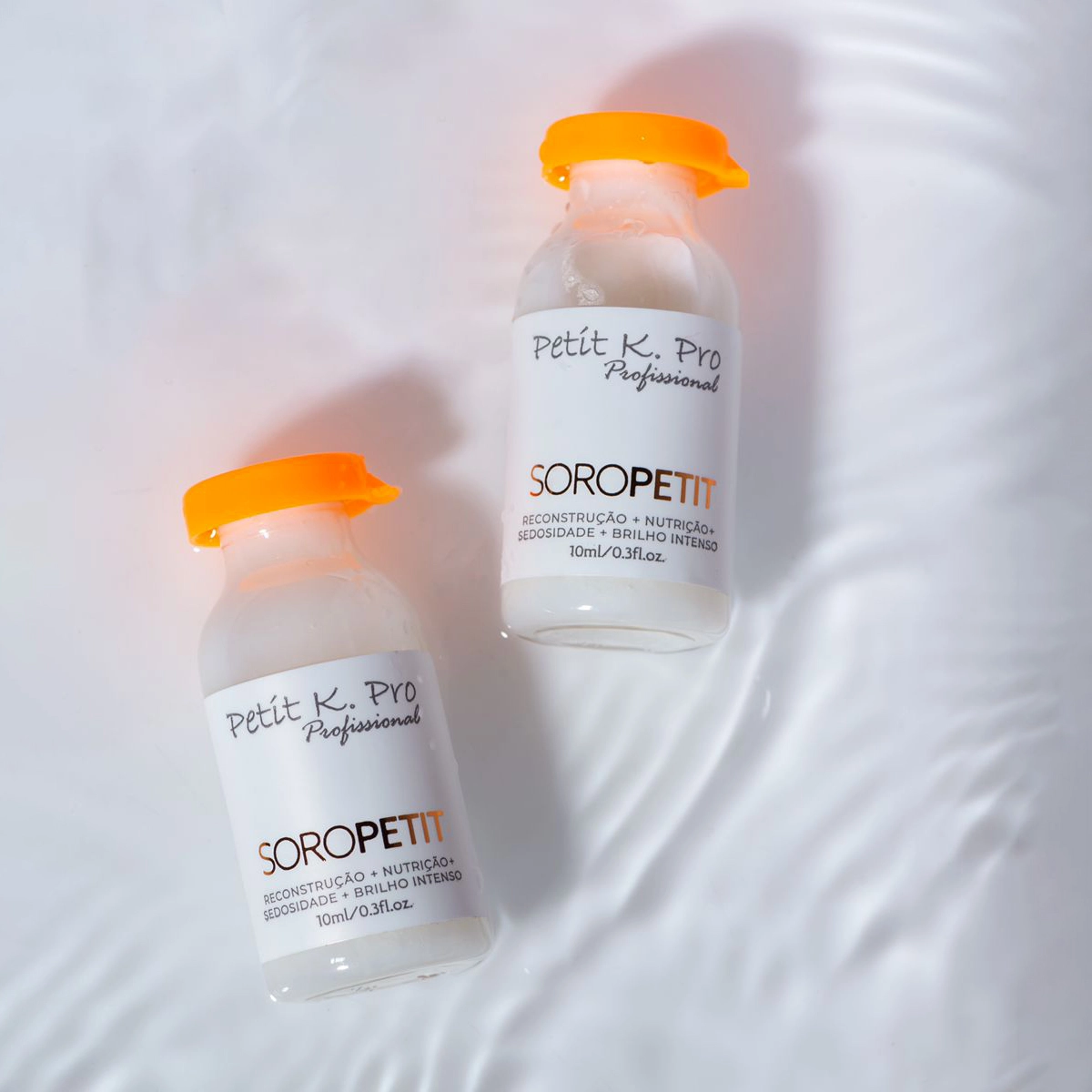 K.Pro Soro Petit - Ampola Capilar 10ml (6 unidades): para todos os tipos de cabelo. Promove resultado imediato, deixando os fios sedosos, resistentes e intensamente brilhantes. Enriquecida com nutrientes especiais e extrato de marshmallow, a ampola K.Pro Soro Petit renova o cabelo, garantindo fios mais bonitos e saudáveis.