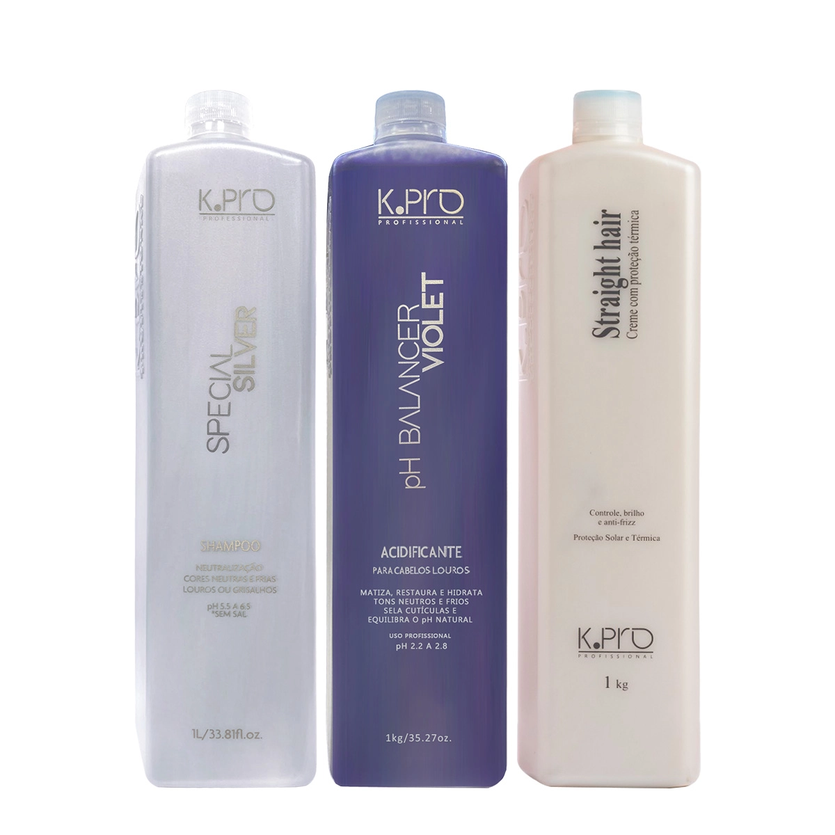 Kit K.Pro Special Silver Shampoo Straight Hair Protetor Térmico e Violet Acidificante (3 produtos)