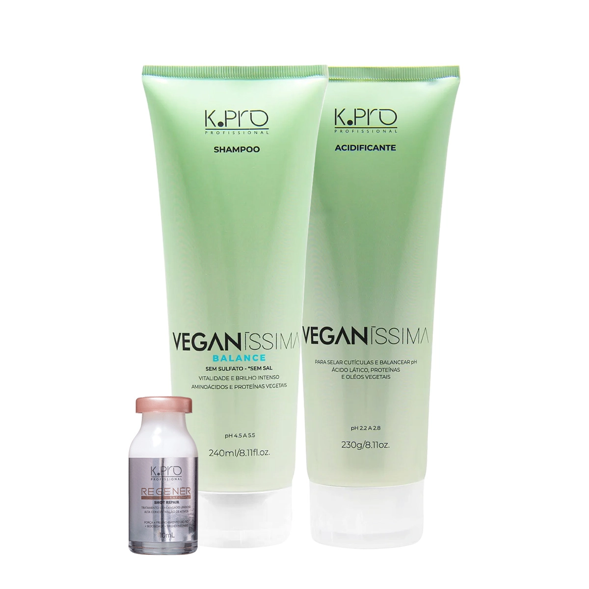 Kit K.Pro Veganíssima Balance Shampoo Acidificante e Regenér Shot Repair Ampola (3 produtos)