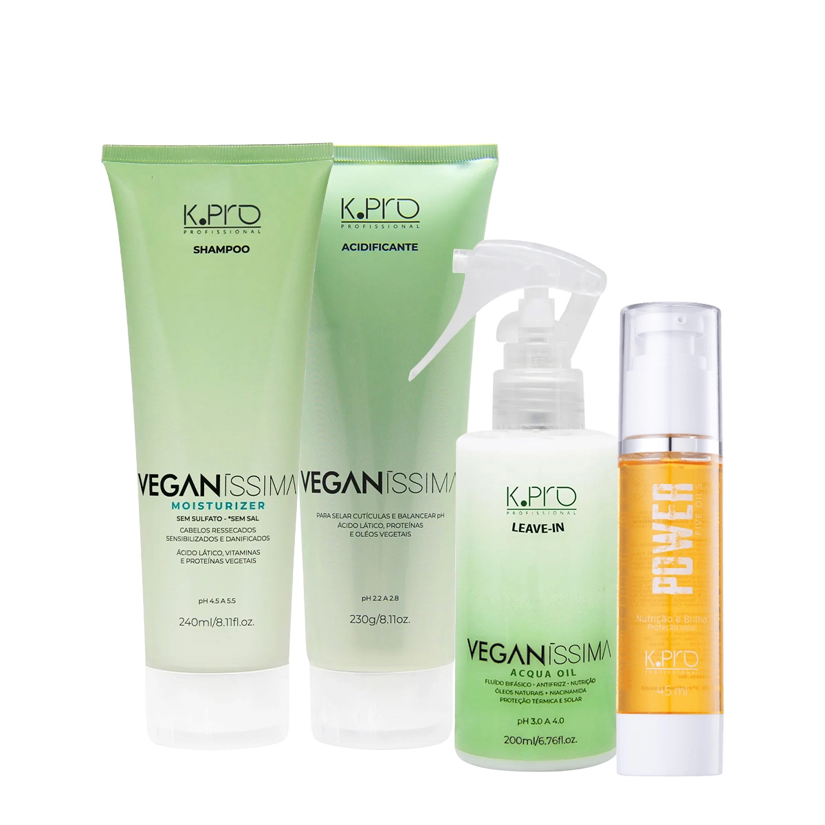 Kit K.Pro Veganíssima Moisturizer Shampoo Acidificante Leave-in e Óleo Capilar (4 produtos)