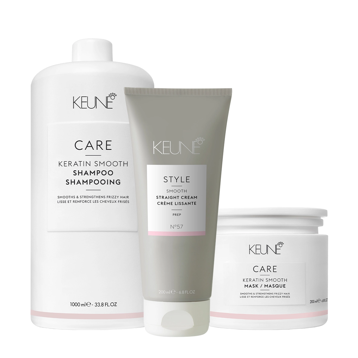 Kit Keune Care Keratin Smooth Shampoo Litro Máscara e Style Straight Cream Nº57 (3 produtos)