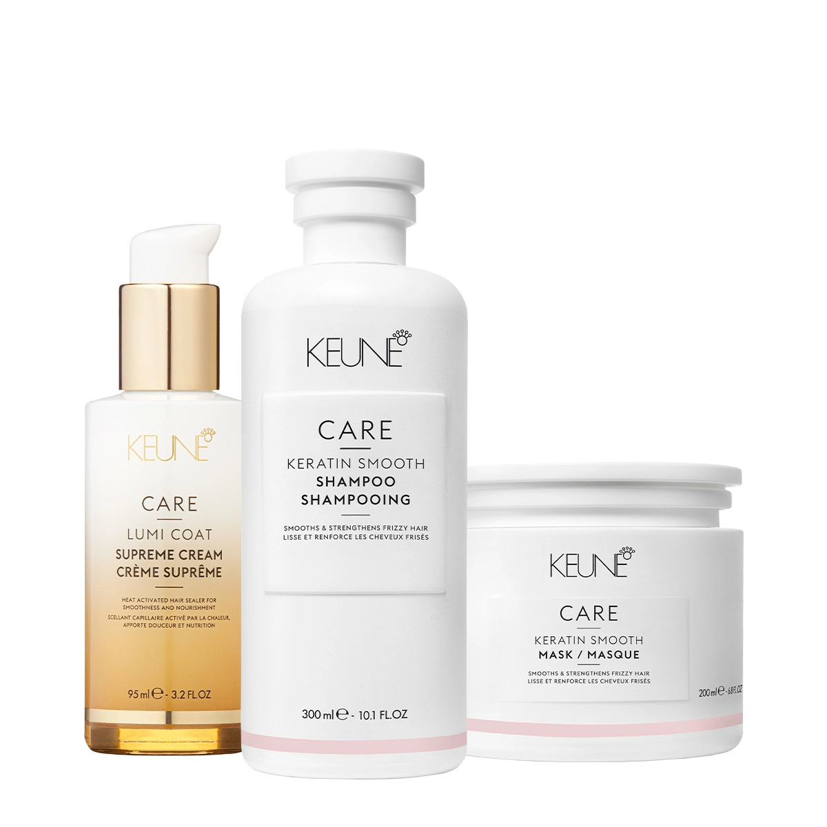 Kit Keune Care Keratin Smooth Shampoo Máscara e Lumi Coat Supreme Cream Finalizador (3 produtos)