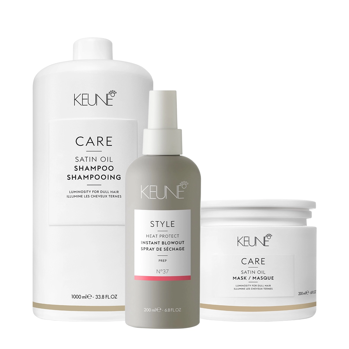 Kit Keune Care Satin Oil Shampoo Litro Máscara e Style Instant Blowout 200ml Nº37 (3 produtos)