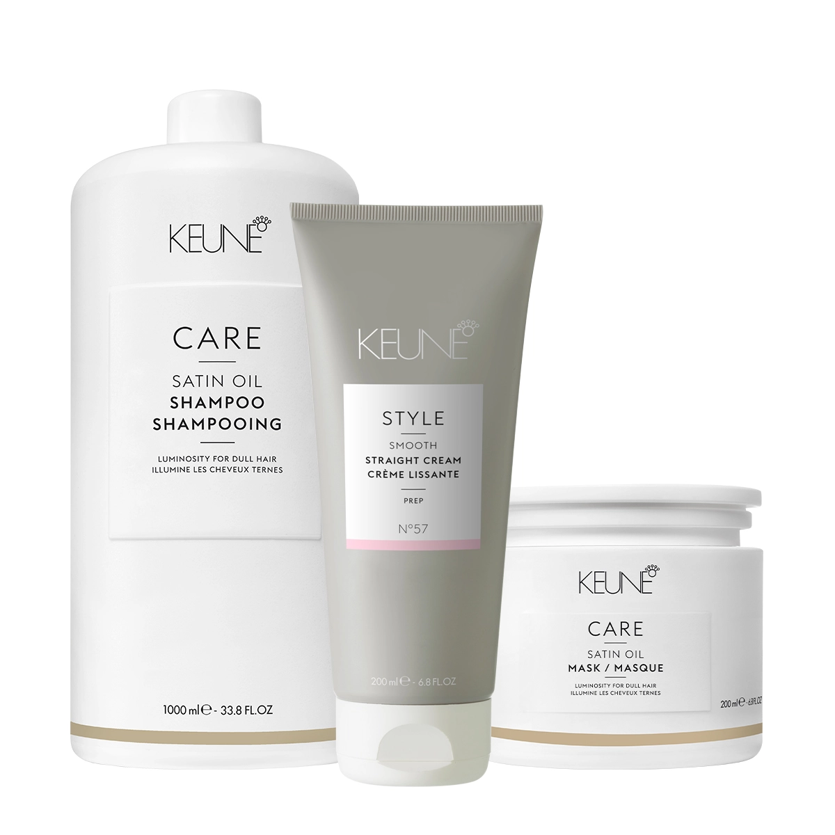 Kit Keune Care Satin Oil Shampoo Litro Mascara e Style Straight Cream N57 (3 produtos)