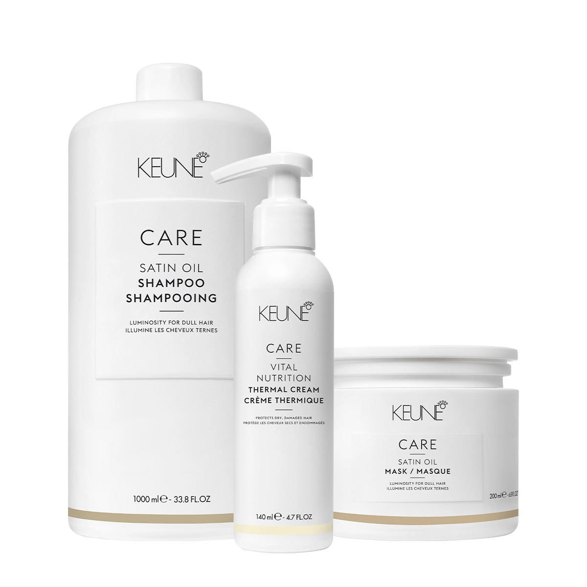 Kit Keune Care Satin Oil Shampoo Litro Máscara e Vital Nutrition Thermal Cream (3 produtos)