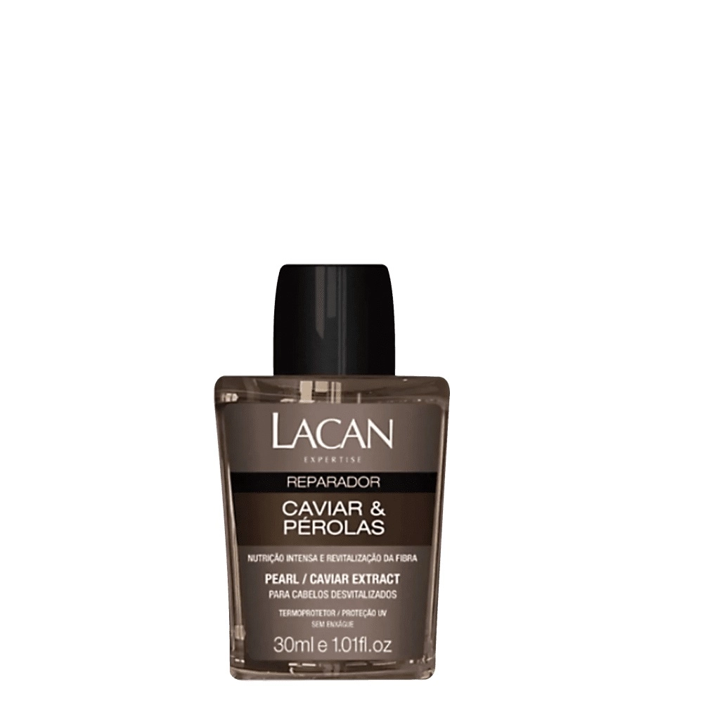 Reparador Capilar para cabelos danificados e desvitalizados. Lacan Caviar & Pérolas repara os fios instantaneamente sem pesar, proporciona nutrição e revitalização da fibra capilar. Reparador Capilar Lacan Caviar & Pérolas possui ação termoprotetora, promove o selamento das cutículas e pontas bipartidas, elimina o frizz e garante uma intensa nutrição aos cabelos. Como Usar Conselho de Aplicação Coloque em torno de 1 a 3 gotas do reparador na palma das mãos. Espalhe no comprimento dos cabelos até completa absorção. Finalize como de costume. Kit Lacan Caviar e Perolas - Reparador 30ml (2 Unidades)