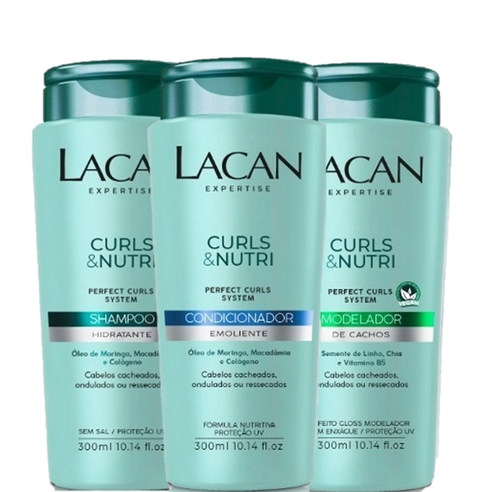 A linha Curls e Nutri Lacan à base de óleo de moringa, macadâmia e colágeno, nutre e protege os cabelos cacheados, ondulados, crespos ou ressecados. Melhora a pentealidade, controla o volume e define os cachos. Fórmula com tecnologia Perfect Curls System, combinação exclusiva de ativos emolientes para promover máxima hidratação aos fios. Este Kit Contém Lacan Curls e Nutri - Condicionador 300ml: promove emoliencia e melhora pentealidade. Lacan Curls e Nutri - Shampoo 300ml: promove higienização hidratante e ação desembaraçante. Lacan Curls e Nutri - Modelador 300ml: finaliza os cuidados de hidratação prolongada, promove proteção tripla: termoativa, antiumidade e UV Como Usar Conselho de Aplicação Shampoo: Aplicar no cabelo úmido, massageando o couro cabeludo, distribuindo suavemente o produto por toda extensão dos fios e enxaguar, repetir o procedimento, se necessário Condicionador: Aplicar na extensão dos fios até as pontas, massageando os cabelos e deslizando os dedos entre os fios, enxaguar. Modelador: Com o cabelo úmido, aplicar em toda extensão dos fios e finalizar como de costume. Não é necessário enxaguar. Kit Lacan Curls e Nutri Cachos Definidos (3 Produtos)