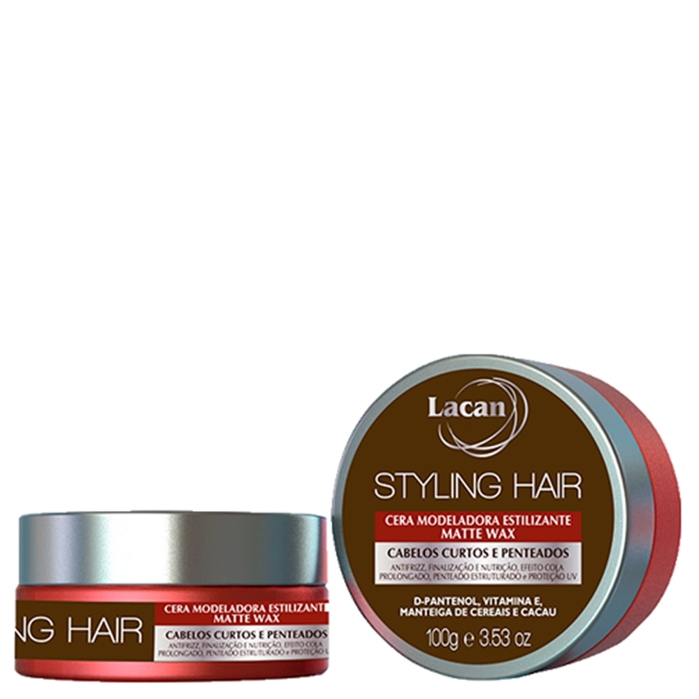 Elaborado com manteiga de cereais, nutre, hidrata e protege os cabelos. A Cera para Estilizar & Modelar parece uma pasta modeladora flexível. Usada por profissionais para esculpir cabelos, criando estilos amassados e despenteados. Corpo e textura, liberdade de criação, modelação radical ou punk. Cabelos arrepiados, espetados ou amassados, use e abuse da imaginação. Resultado comparado aos produtos importados similares. Como Usar Conselho de Aplicação No cabelo seco, trabalhe com uma pequena quantidade do produto sobre o cabelo seco dando estilo e formato desejado.Kit Lacan Styling Hair Matte Wax - Cera Modeladora 100g (2 Unidades)