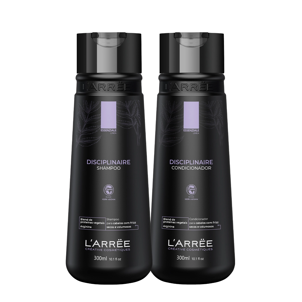 Esse Kit Contém LARREE Essenziale Disciplinaire - Shampoo 300ml: para cabelos secos, rebeldes e volumoso. Shampoo suave, rico em propriedades hidratantes e disciplinantes. Sua fórmula contém Blend de proteínas vegetal e Arginina, que disciplina e repara o cabelo, reduzindo frizz e controlando volume dos cabelos finos, secos, rebeldes e volumosos. LARREE Essenziale Disciplinaire - Condicionador 300ml: altamente nutritivo e rico em propriedades disciplinantes. Sua fórmula contém Blend de proteínas vegetal e Arginina, que repara a estrutura das cutículas, disciplinando, restaurando e controlando o volume dos cabelos finos, secos, rebeldes e volumosos. Conselho de AplicaçãoKit LARREE Essenziale Disciplinaire Duo (2 produtos)