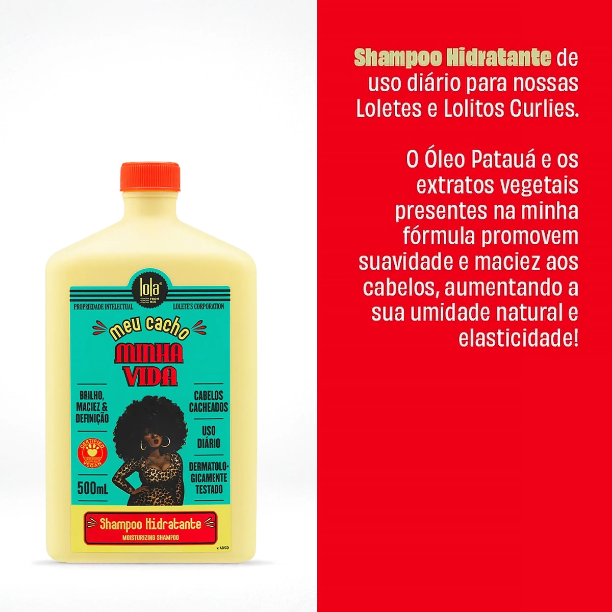 Este Kit Contém Lola From Rio Meu Cacho Minha Vida - Shampoo 500ml: aumenta a umidade natural dos fios, deixando-os vibrantes e higienizados. Realiza uma limpeza delicada, emoliente e hidratante, que deixa os cachos saudáveis e radiantes. Possui fórmula rica em ativos umectantes, que suavizam o cabelo. Lola From Rio Meu Cacho Minha Vida - Condicionador 500ml: reestabelece a umidade do fio, nutrindo e condicionando. Restaura os danos sofridos na fibra capilar, devolvendo emoliência, definição e movimento aos cachos. Com textura leve, suaviza e hidrata os fios. Conselho de AplicaçãoKit Lola From Rio Meu Cacho Minha Vida Duo (2 produtos)