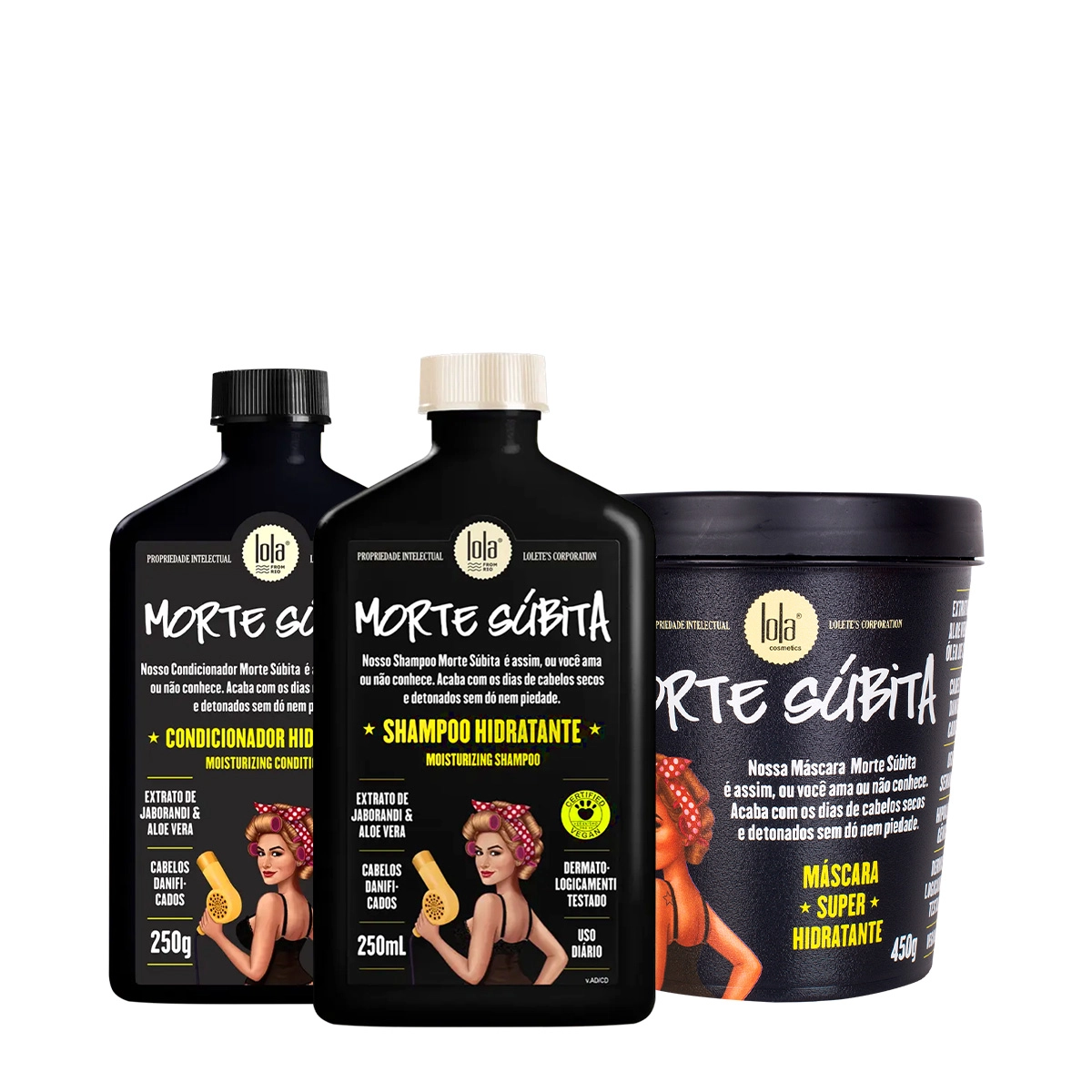 Este Kit Contém Lola From Rio Morte Súbita - Shampoo 250ml: elimina o ressecamento e reforça os fios com desembaraço e suavidade. Limpa suavemente, repõe a hidratação e a nutrição. Melhora a elasticidade dos fios e alinha as cutículas, conferindo maciez e o fim dos arrepiados. Lola From Rio Morte Súbita - Condicionador 250ml: repõe a hidratação e a força perdida, para fios macios e suaves. Combate o ressecamento dos fios, aumenta hidratação, resgatando a elasticidade dos fios. Lola From Rio Morte Súbita - Máscara Capilar 450g: com ingredientes naturais que fortalecem a estrutura dos fios contra a quebra e os protege dos danos causados pelo calor e raios UV. Seus nutrientes resgatam a hidratação natural da fibra capilar, o brilho e a suavidade dos fios. Conselho de AplicaçãoKit Lola From Rio Morte Súbita Home Care (3 produtos)