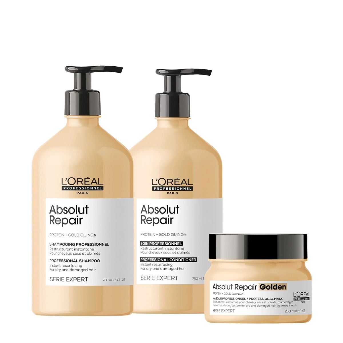 Kit L'Oréal Professionnel Absolut Repair Gold Quinoa Protein Shampoo Condicionador e Máscara (3 produtos)