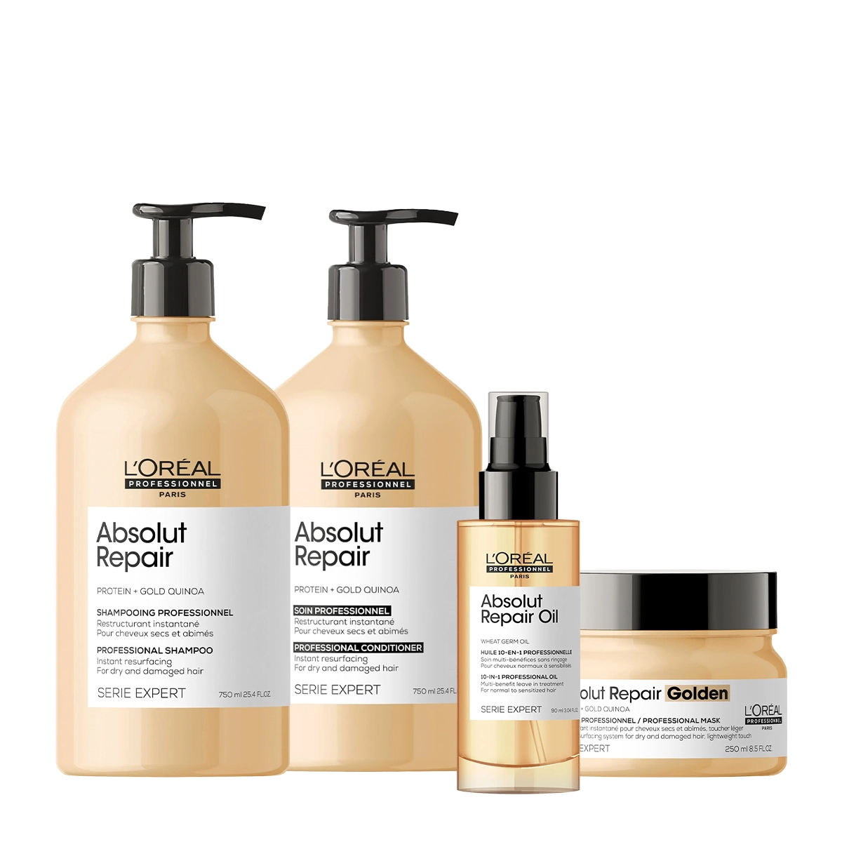 Kit L'Oréal Professionnel Absolut Repair Gold Quinoa Protein Shampoo Condicionador Máscara e Óleo (4 produtos)