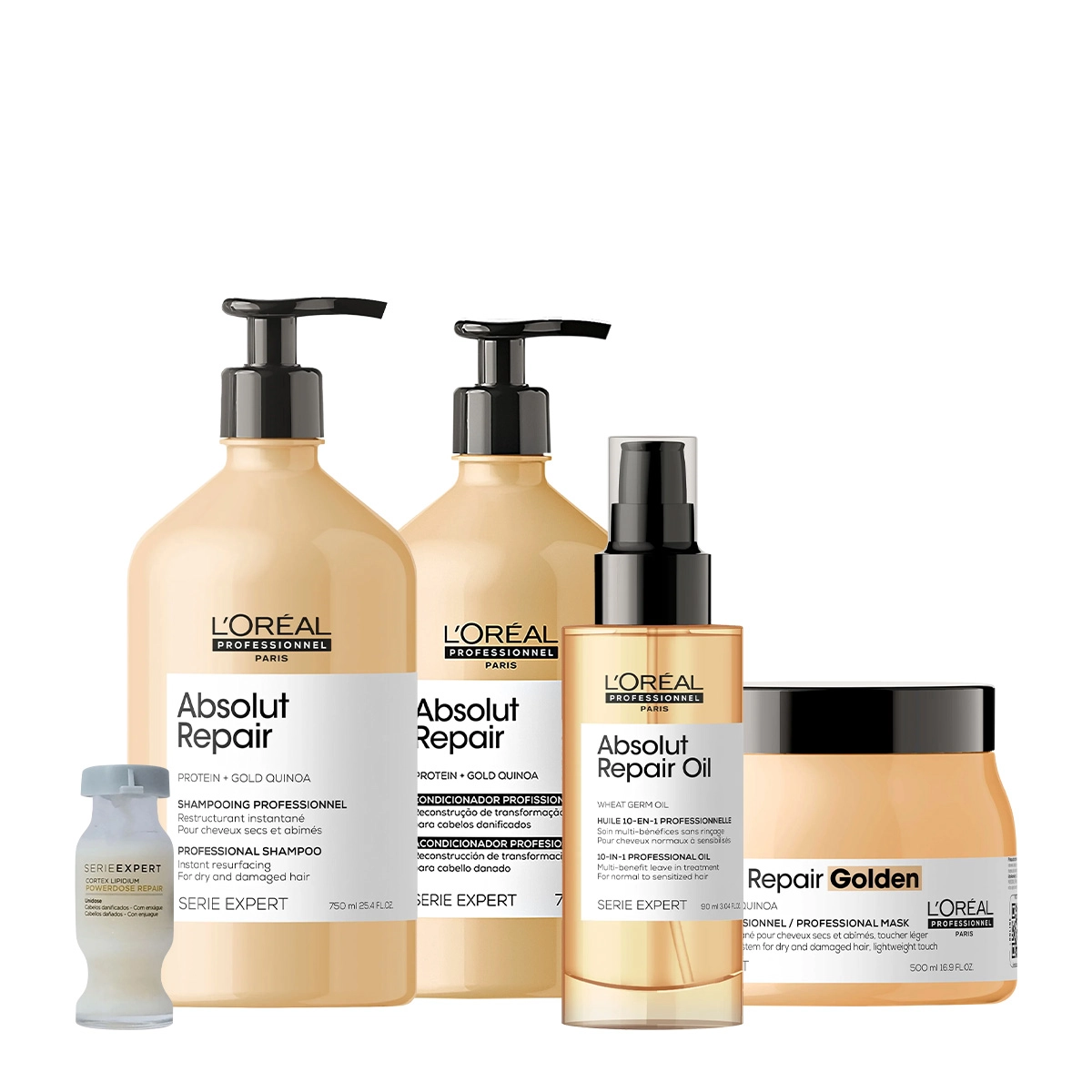Kit L'Oréal Professionnel Absolut Repair Gold Quinoa Protein Shampoo Condicionador Máscara G Óleo e Power Repair (5 prod