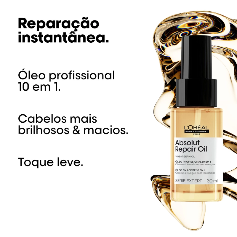 L'Oréal Professionnel Absolut Repair Gold - brilho leve e reconstrução Esse Kit Contém L'Oréal Professionnel Serie Expert Absolut Repair Gold Quinoa Protein - Shampoo 750ml: limpa suavemente enquanto reestrutura a fibra capilar, devolvendo brilho e vitalidade aos fios. L'Oréal Professionnel Serie Expert Absolut Repair Gold Quinoa - Óleo Reparador 30ml: nutre, protege do calor, disciplina e confere toque sedoso com movimento natural e luminosidade. Conselho de Aplicação