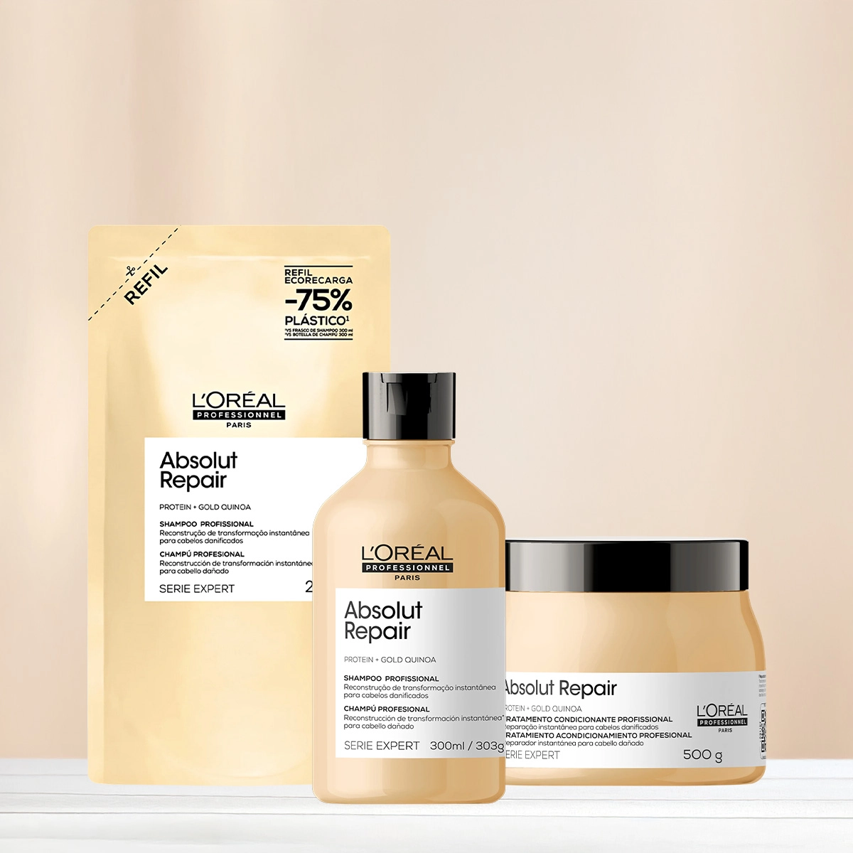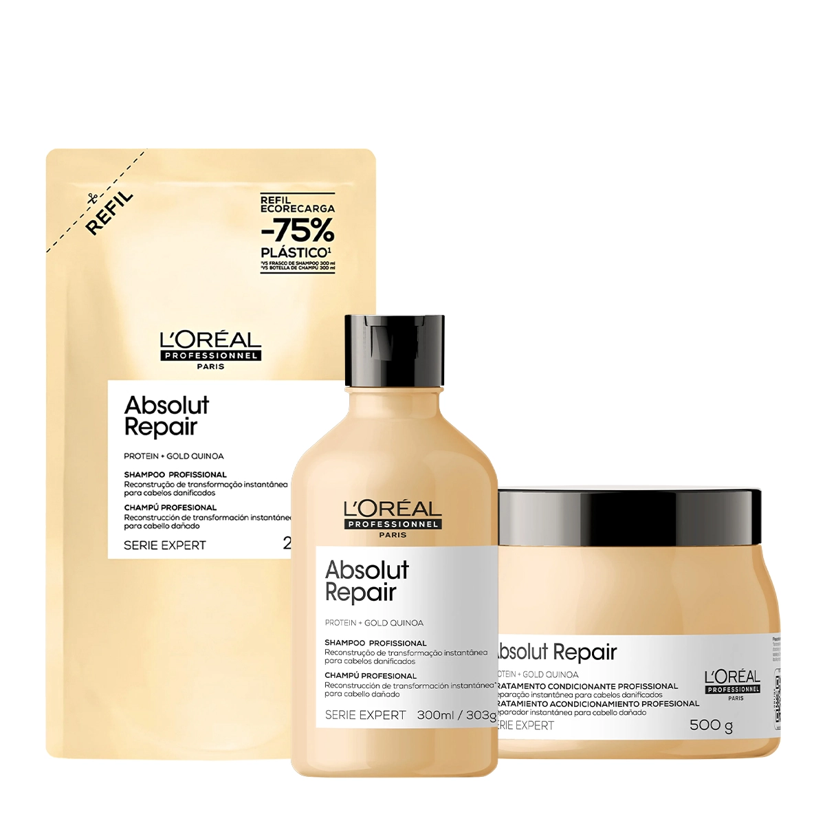 Kit L'Oréal Professionnel Absolut Repair Gold Shampoo Máscara Refil (3 produtos)