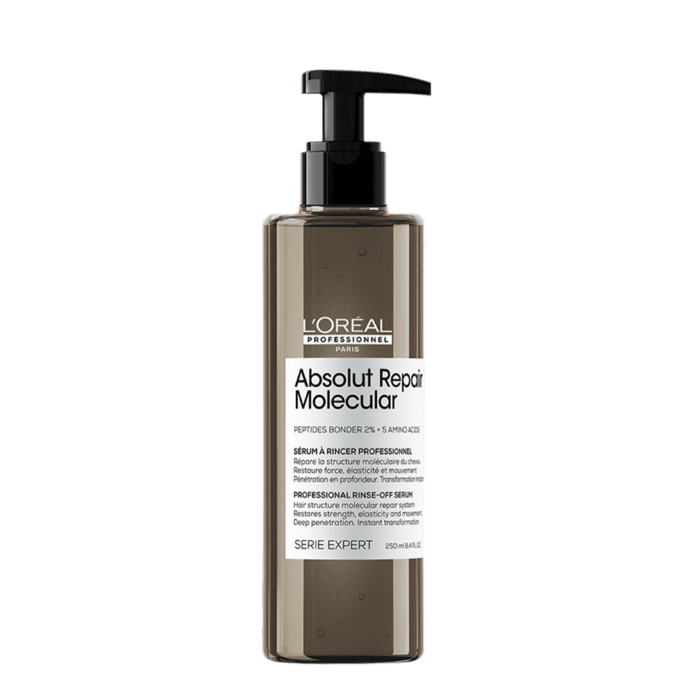 Esse Kit Contém L'Oréal Professionnel Absolut Repair Molecular - Shampoo 500ml: repara a estrutura macromolecular do fio, promovendo força, nutrição, movimento e maciez. Ele é uma inovação da L'Oréal Advanced Research, desenvolvida para revitalizar o cabelo de maneira nunca vista antes. Revolucionária reconstrução completa da estrutura molecular do cabelo. Ideal para todos os tipos de cabelos danificados, sejam coloridos, descoloridos ou naturais. L'Oréal Professionnel Absolut Repair Molecular - Sérum Capilar 250ml: restaura a força, flexibilidade e o movimento do fio. Ele foi inspirado nos séruns ultra potentes para a pele e penetra profundamente na fibra capilar para reconstruir sua estrutura molecular. Possui textura líquida que é imediatamente absorvida pela fibra e proporciona reparo molecular sem pesar no fio. Conselho de Aplicação Shampoo: aplique o shampoo no cabelo molhado e massageie até obter uma espuma leve. Enxágue e repita o processo se sentir necessidade. Sérum Capilar: divida o cabelo molhado ao meio, pressione de 2 a 3 pumps por mecha e distribua uniformemente do comprimento às pontas. Deixe o sérum agir no cabelo de1 a 2 minutos e enxágue bem. Kit L'Oréal Professionnel Absolut Repair Molecular Shampoo 500 e Sérum (2 produtos)