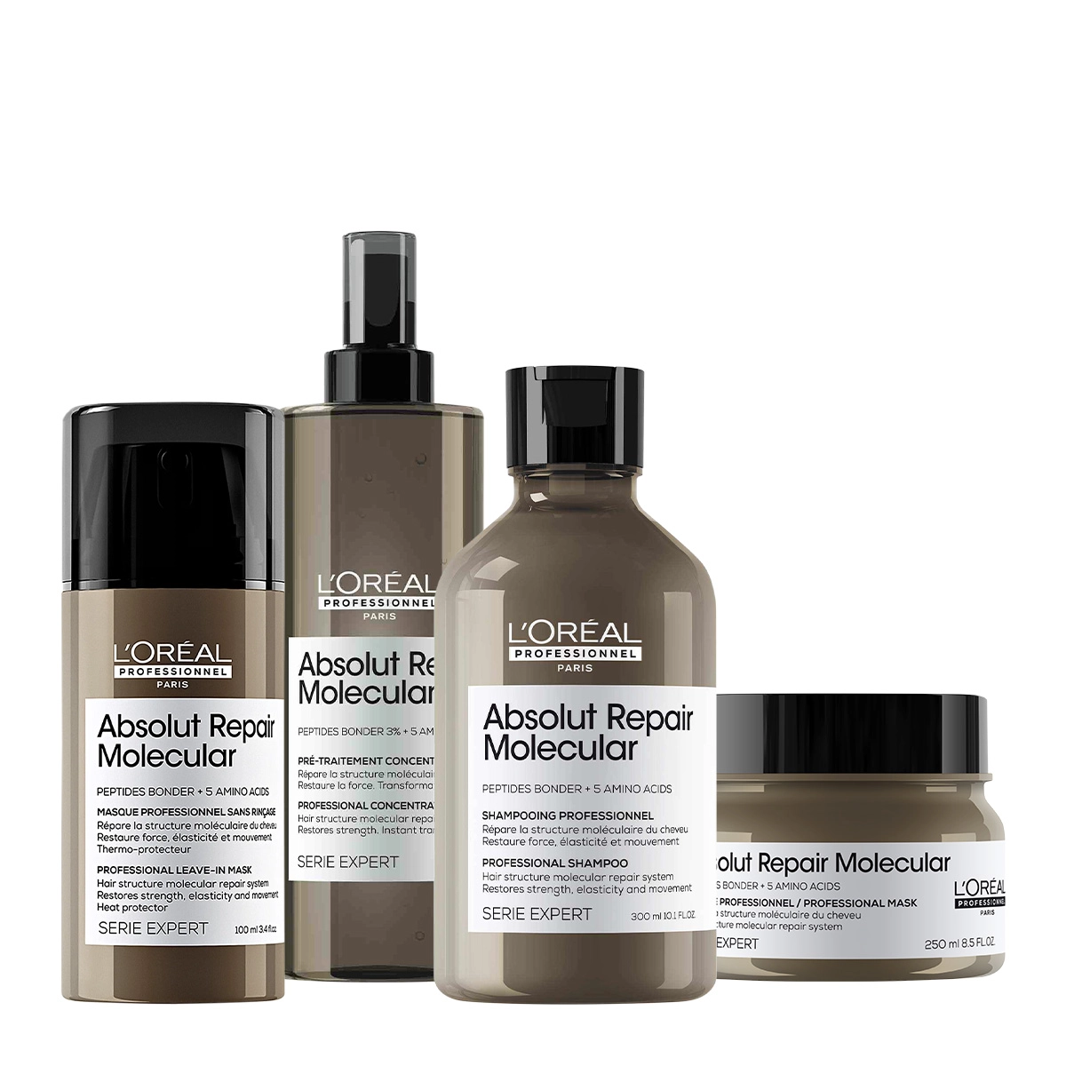 Kit L'Oréal Professionnel Absolut Repair Molecular Tratamento Shampoo Máscara Leave-in (4 produtos)