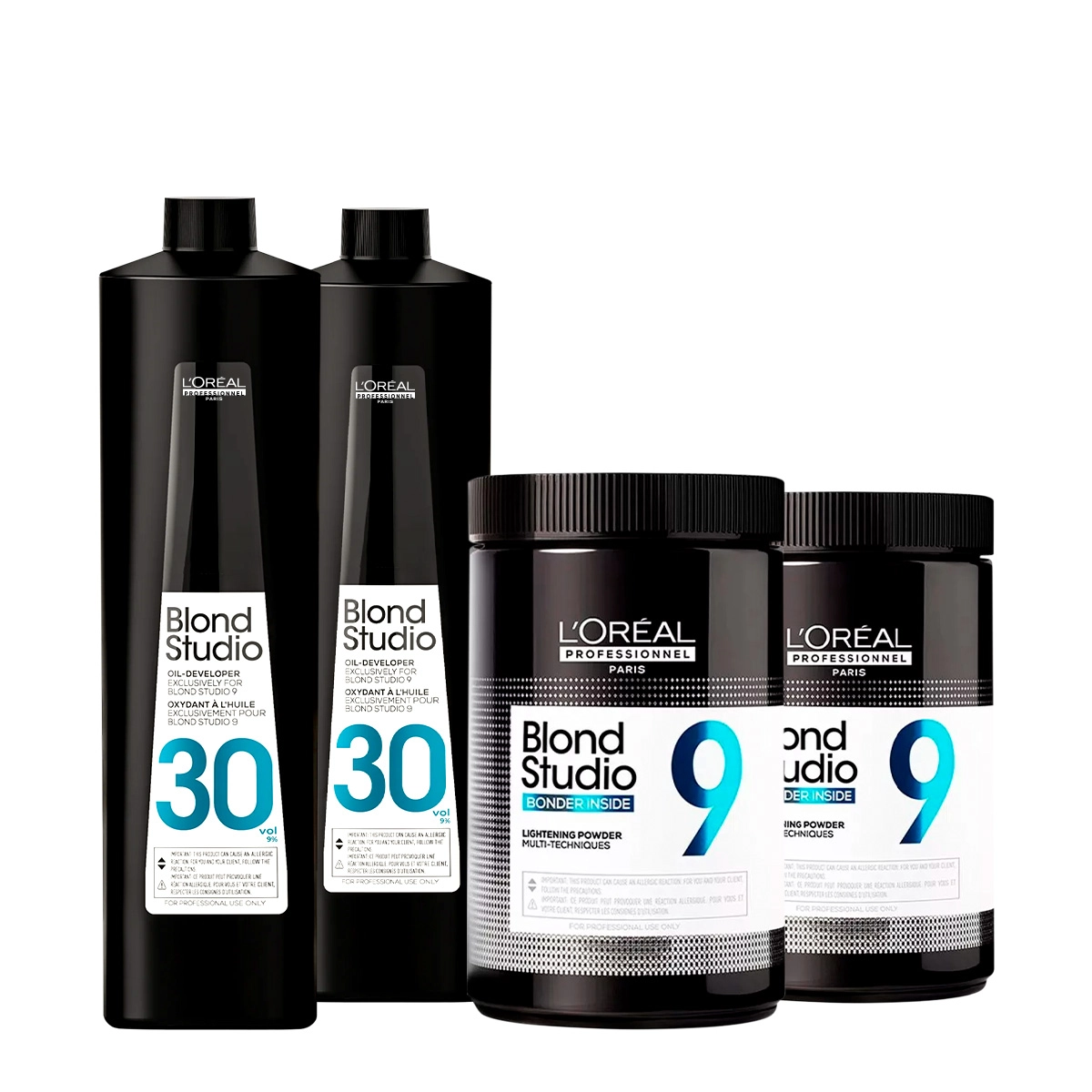 Kit L'Oréal Professionnel Blond Extra Studio 9 Pó Descolorante e Oil Developer Extra Oxidante 30V (4 produtos)