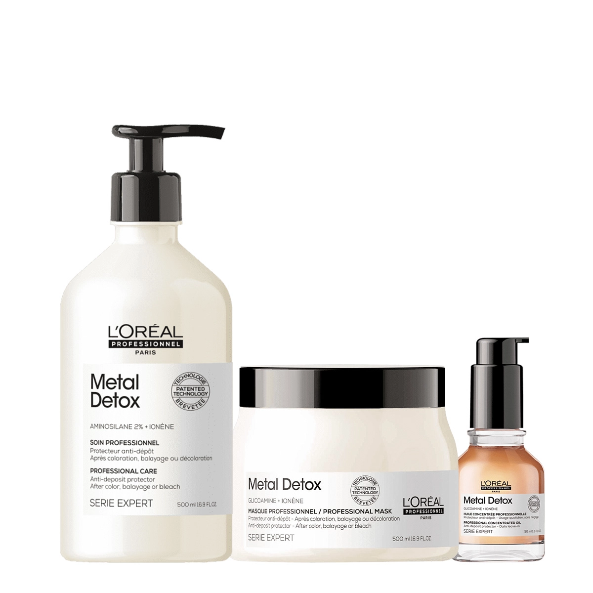 Kit L'Oréal Professionnel Metal Detox Máscara Óleo e Detox Soin Produto Anti-Depósito (3 produtos)
