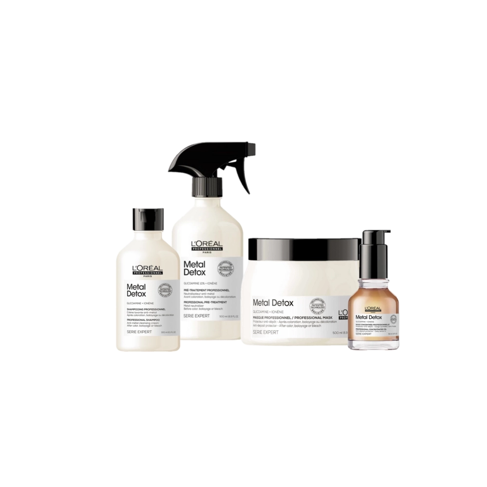 Este Kit Contém L’Oréal Professionnel Metal Detox - Shampoo 300ml: para cabelos coloridos e danificados, remove gentilmente partículas de metal do cabelo, graças à tecnologia patenteada, enriquecida com Glicoamina, a molécula que rastreia e neutraliza o metal dentro da fibra capilar. Promove maciez, brilho, sedosidade, maior durabilidade da cor, com textura rica e cremosa, livre de sulfato. L’Oréal Professionnel Metal Detox - Máscara Capilar 500ml: para cabelos coloridos e danificados, é a primeira máscara protetora anti-depósito a proteger o cabelo do depósito de partículas de metal. Proporciona um cabelo menos poroso e um tratamento para maciez, brilho e sedosidade, maior durabilidade da cor, com textura rica e cremosa. L’Oréal ProfessionnelMetal Detox Huile - Óleo Capilar 50ml: óleo concentrado protetor anti-depósitos rico em glicoamina, ajuda a proteger o cabelo do depósito de partículas. Sua textura é instantaneamente absorvida pela fibra capilar sem pesar. A cor fica mais brilhante e intensa. O cabelo fica mais nutrido e forte. L'Oréal Professionnel Metal Detox - Spray Neutralizador Anti-Metal 500ml: pré tratamento neutralizador antimetal para cabelos coloridos e danificados. Protege a fibra antes de cada serviço ao neutralizar o excesso de cobre, graças a tecnologia patenteada, enriquecida com Glicoamine e Lonene. Pode ser utilizada antes de qualquer serviço profissional de coloração, de oxidação, balayage ou descoloração, isso permite uma ótima absorção da cor não afeta o processo, a integridade da fibra fica preservada. L'Oréal Professionnel Metal Detox Soin - Produto Técnico 500ml: protetor para cabelos coloridos. Soin mantém a cor protegida e vibrante com uma ação anti-depósito. Protege a fibra capilar de depósitos de partículas de metal após a coloração, mechas ou serviço de descoloração. Dessa forma, impede a ação dos metais, garantindo mais força, resistência e brilho aos fios e mantendo a cor radiante e duradoura. Conselho de AplicaçãoKit L’Oréal Professionnel Metal Detox Neutralizador Total (5 produtos)