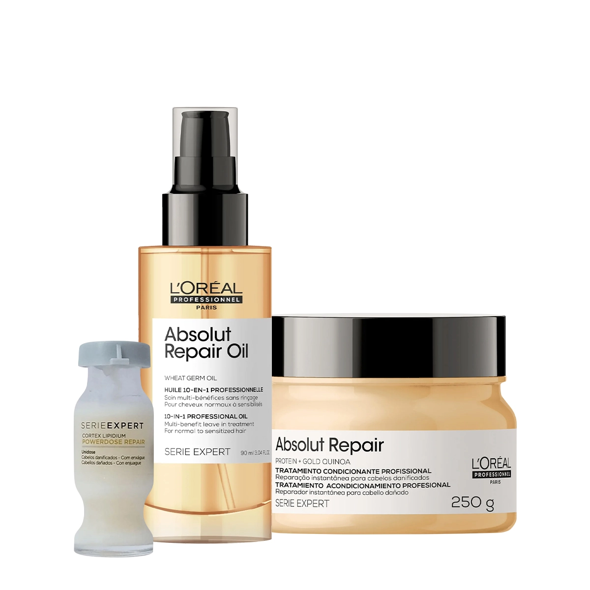Kit L'Oréal Professionnel Serie Expert Absolut Repair Gold Máscara Óleo e Power Repair (3 produtos)