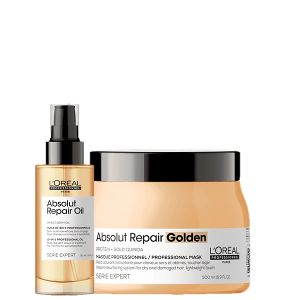 Kit L'Oréal Professionnel Serie Expert Absolut Repair Gold Quinoa Protein Golden Máscara 500ml + Óleo 90ml (2 Produtos)