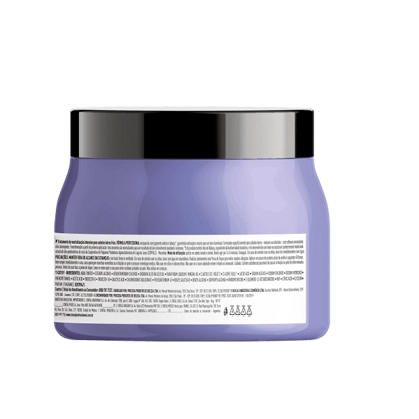 LOreal Professionnel Serie Expert Blondifier Cool Mascara Capilar 500g 2 Unidades Máscara para cabelos loiros, descoloridos e com mechas. L'Oréal Professionnel Serie Expert Blondifier Cool é ideal para neutralizar o tom, além de nutrir os fios. A Máscara L'Oréal Professionnel Serie Expert Blondifier Cool proporciona nutrição profunda e neutralização dos tons amarelos indesejados e brilho intenso. Assim, garante um loiro com tom frio perfeito, maciez e luminosidade aos fios. A linha Blondifier foi desenvolvida especialmente para isso: um tratamento iluminador e neutralizante para loiros ou descoloridos. Seu principal ingrediente, o Açaí Polyphenols, é um importante antioxidante responsável por prevenir a oxidação dos cabelos loiros ou descoloridos, sensíveis às exposições climáticas, poluição e outros fatores externos. Além disso, os pigmentos roxos presentes da fórmula de L’Oréal Professionnel Serie Expert Blondifier Cool retiram tons amarelados ou alaranjados que surgem com o tempo e têm concentração controlada para que não sobrecarreguem os fios. Conselho de Aplicação Após lavar o cabelo com shampoo, se achar necessário, aplique o condicionador. E então, aplique a máscara pelo comprimento e pontas. Deixe agir no cabelo por 3-5 minutos. Em seguida, enxágue completamente. Para potencializar o resultado, massageie mecha a mecha, deslizando as mãos no sentido do crescimento do cabelo, com o movimento de enluvá-lo. Espalhe bem.