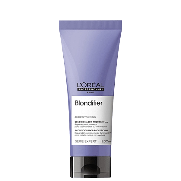 LOreal Professionnel Serie Expert Blondifier Cool Shampoo Matizador 1500ml e Condicionador 200ml Shampoo L’Oréal Professionnel Serie Expert Blondifier Cool Shampoo matizador para cabelos loiros descoloridos e platinados. L’Oréal Professionnel Serie Expert Blondifier Cool neutraliza e esfria o tom enquanto trata. Os pigmentos roxos presentes da fórmula do Shampoo L’Oréal Professionnel Serie Expert Blondifier Cool retiram tons amarelados ou alaranjados que surgem com o tempo e têm concentração controlada para que não sobrecarreguem os fios. Limpa suavemente e hidrata. Garante os fios na cor perfeita, enquanto protege contra o desgaste diário. Conselho de Aplicação Aplique o shampoo nos fios molhados e massageie delicadamente o couro cabeludo. Depois, arraste o shampoo para as pontas e massageie também. Enxágue completamente. Cuidados em casa: seguir um cronograma capilar é o segredo para ter fios lindos, saudáveis e com uma coloração intensa, e no caso dos cabelos loiros e finos, não é diferente. Condicionador L’Oréal Professionnel Serie Expert Blondifier Condicionador para cabelos loiros, descoloridos e com mechas. L’Oréal Professionnel Serie Expert Blondifier Conditioner reacende a cor, traz brilho e muita maciez. Para quem quer ter os fios claros e lindos, sem comprometer a saúde. Com polifenóis antioxidantes vindos do Açaí, o Condicionador L’Oréal Professionnel Serie Expert Blondifier Conditioner repara as agressões diárias causadas aos fios, pela poluição, clima e sol. Também equilibra o pH da fibra para garantir cutículas seladas e eliminar o aspecto ressecado. Conselho de Aplicação Nos fios limpos e úmidos, passe uma quantidade suficiente de condicionador no comprimento e pontas, sem aplicar na raiz. Massageie delicadamente as mechas, deixe agir um pouco e, depois, enxágue. Nossos Experts Ensinam Uma dica para garantir que não irá aplicar condicionador na raiz e sobrecarregar os fios, é passar sempre da altura das orelhas para baixo. Penteie com os dedos e espalhe sem ultrapassar este limite.