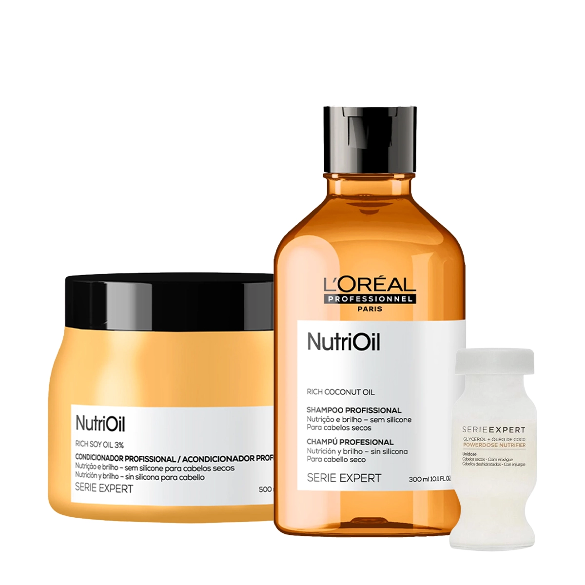 Kit L'Oréal Professionnel Serie Expert NutriOil Shampoo Máscara e Ampola (3 produtos)