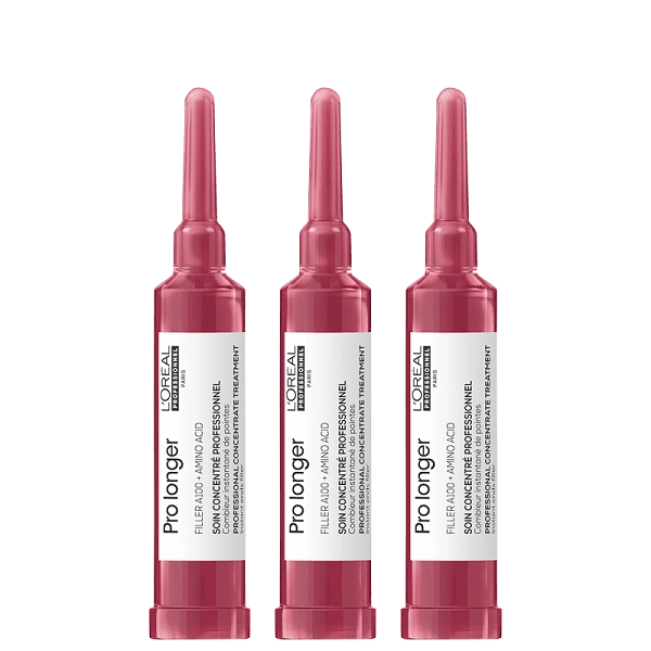 Ampola de tratamento para cabelos longos com pontas afinadas ou danificadas. Ampola L'Oréal Professionnel Serie Expert Pro Longer preenche instantaneamente a fibra capilar das pontas. Ampola L'Oréal Professionnel Serie Expert Pro Longer conta com alta concentração de Filler-A100 e Aminoácidos para densificar as pontas com resultado imediato e de maneira duradoura. Os Aminoácidos penetram na fibra, preenchendo o seu interior enquanto o Filler-A100 preenche a parte superior da fibra, deixando as pontas preenchidas e mais fortes. Após o uso, há uma redução de 20% das pontas duplas. Após lavar o cabelo com o shampoo, aplique a ampola por todo o cabelo. Enxágue em seguida. Para conquistar o efeito desejado sempre siga as orientações do rótulo do produto. Para um melhor resultado, utilize a linha completa de L'Oréal Professionnel Serie Expert Pro Longer. Isso garantirá um cabelo mais longo, denso e com brilho. LOreal Professionnel Serie Expert Pro Longer Ampola Capilar 15ml 3 Unidades