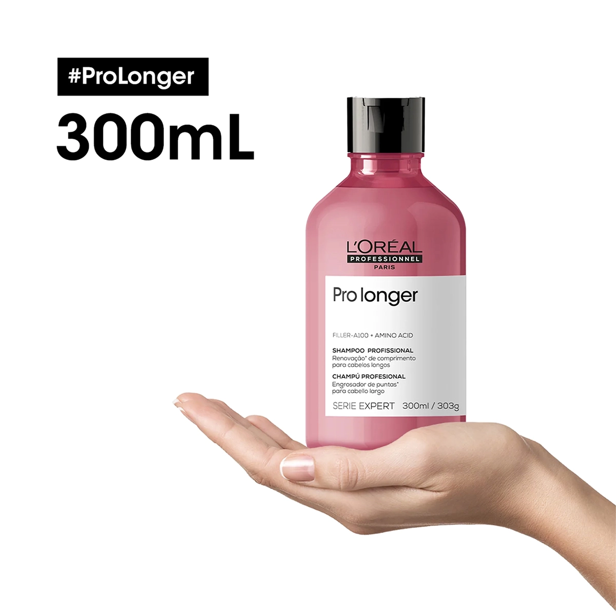 Shampoo para cabelos longos com pontas afinadas ou danificadas. ajuda a renovar a aparência da fibra instantaneamente, devolvendo densidade às pontas. apresenta uma fórmula exclusiva que deixa o cabelo mais forte, macio e com 5x mais brilho. Traz a tecnologia da Co-Emulsão, que conta com moléculas 50 vezes menores do que as tradicionais, que penetra profundamente na fibra e forma um filme protetor, aperfeiçoando a superfície do cabelo. Deixa os cabelos com toque leve e suave. Conselho de AplicaçãoKit L'Oréal Professionnel Serie Expert Pro Longer - Shampoo 300ml (2 unidades)