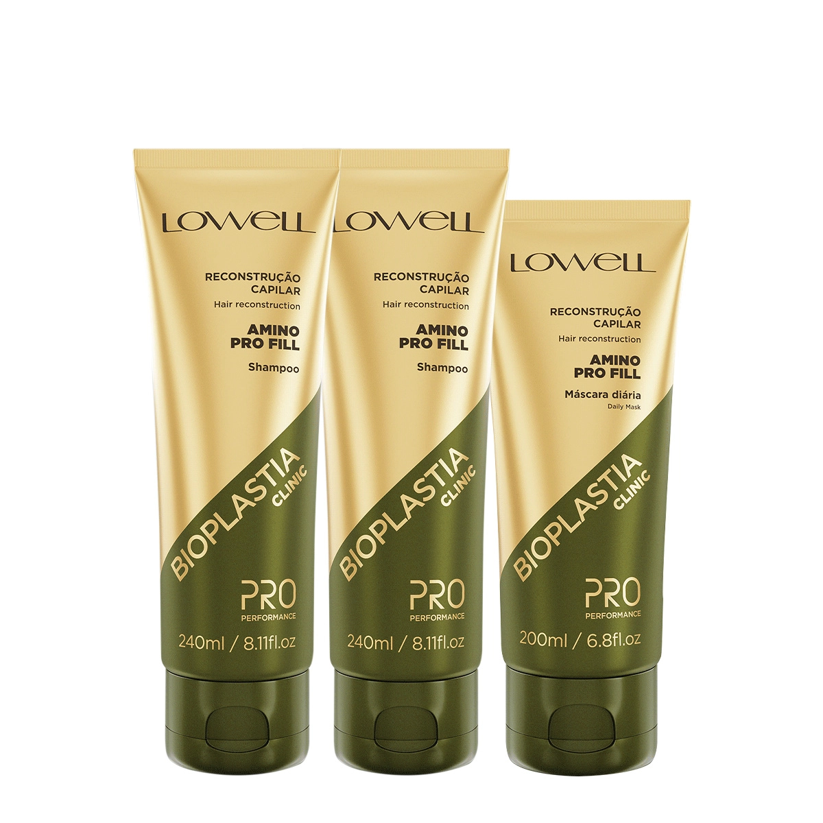 Este Kit Contém: Lowell Pro Bioplastia Clinic - Shampoo 240ml (2 unidades): promove limpeza suave e efetiva garantindo fios protegidos e reconstruídos por muito mais tempo. Lowell Pro Bioplastia Clinic - Máscara Capilar 200ml: condiciona e promove maciez aos fios ao mesmo tempo que garante fortalecimento e brilho diários. Conselho de AplicaçãoKit Lowell Bioplastia Clinic Shampoo Extra e Máscara Capilar (3 produtos)