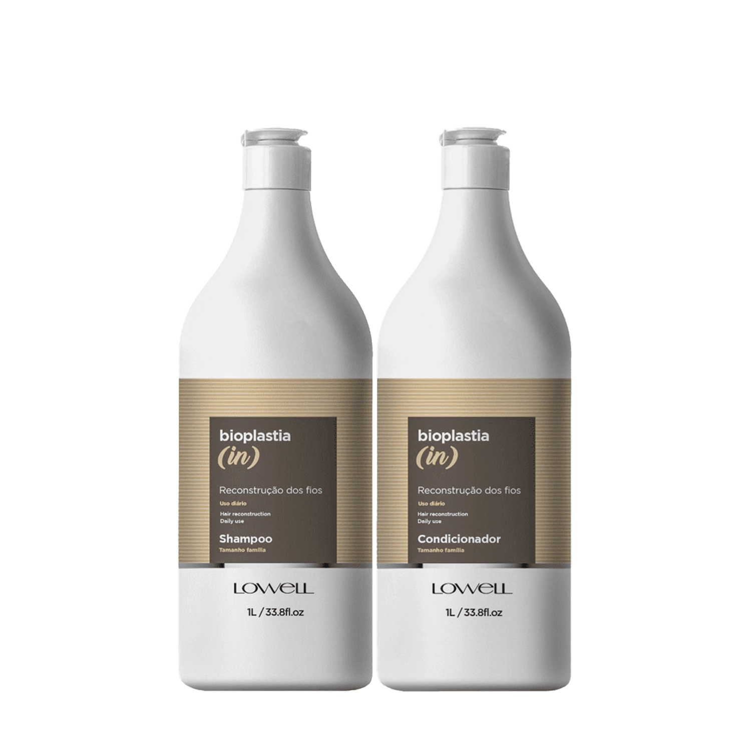 Este Kit Contém Lowell Bioplastia (in) - Shampoo 1L: para cabelos danificados, realiza uma limpeza eficaz, confere força e suavidade aos fios. Conta com a tecnologia Amino Care, que ajuda a recuperar os danos da fibra capilar e preparar as madeixas para a reconstrução. Lowell Bioplastia (in) - Condicionador 1L: para cabelos danificados, condiciona e sela os fios, ideal para o cuidado diário. Possui a tecnologia Amino Care, que ajuda a repor a massa perdida do cabelo, além de ajudar na reconstrução e reparação de danos. Conselho de Aplicação Shampoo: com o cabelo molhado, aplique o shampoo e massageie. Enxague e repita a aplicação. Após retirar a umidade excessiva, aplique o condicionador ou a máscara capilar. Condicionador: após utilizar o shampoo, aplique o condicionador no comprimento e pontas e massageie. Deixe agir por cinco minutos e enxague. Finalize com o leave-in. Kit Lowell Bioplastia (in) Duo Salão (2 produtos)
