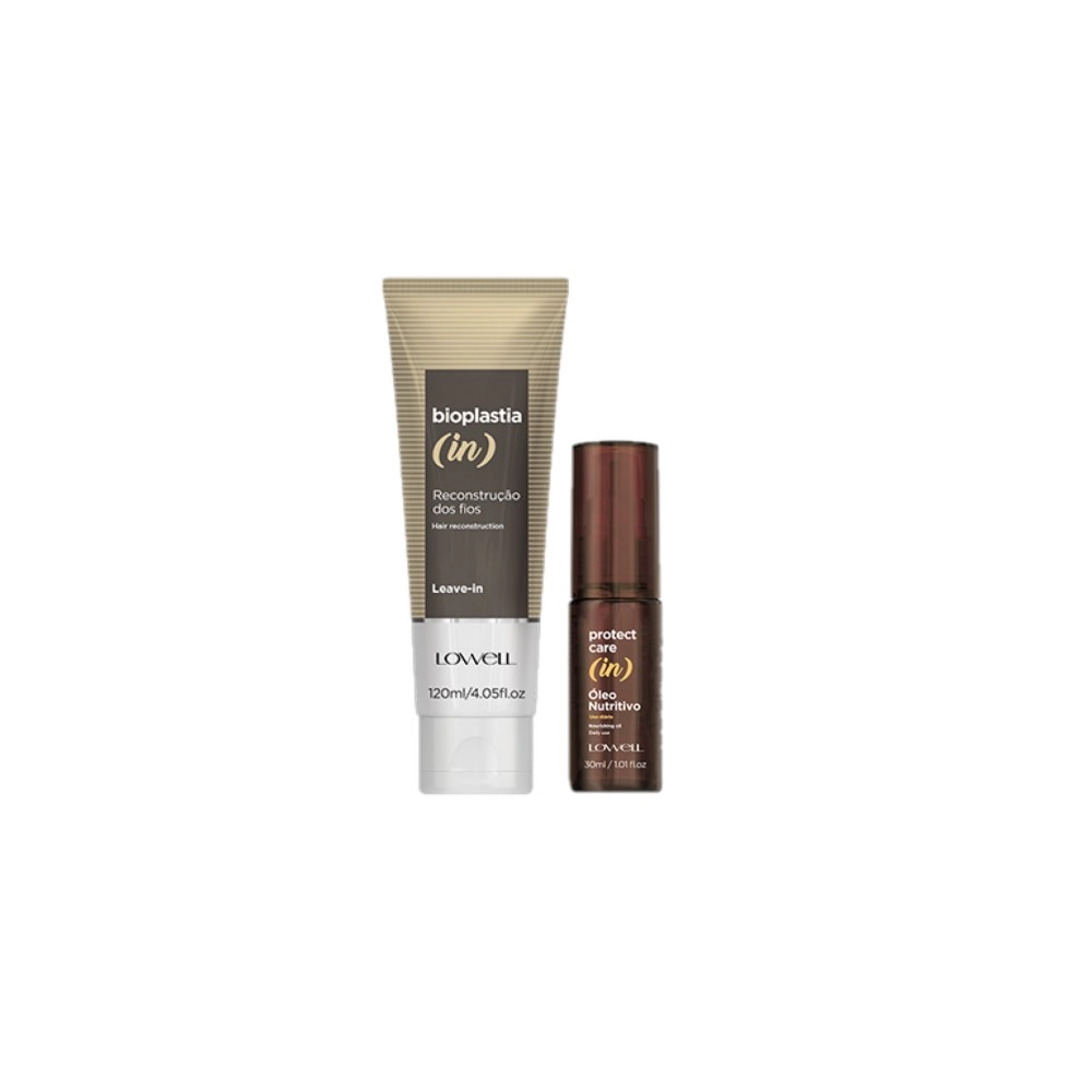 Kit Lowell Bioplastia In Protect Care (2 produtos) Este Kit Contém Lowell Bioplastia In - Leave-in Reconstrutor 120ml: para cabelos extremamente danificados. Ação seletiva na reposição de massa capilar. Um concentrado de aminoácidos reparadores que preenche e corrige os danos além de oferecer proteção UV, proteção térmica e blindagem contra quebra e frizz. Lowell Protect Care (in) - Óleo Nutritivo 30ml:óleo nutritivo para cabelos ressecados, devolve a camada lipídica e repõe profundamente os nutrientes dos fios.O Óleo Nutritivo Lowell Protect Care (in) tem ativos que combatem a aspereza e o frizz, além de garantir toque macio e brilho ao cabelo. Pode ser usado para umectação, como leave-in com proteção térmica, potencializador de máscaras e finalizador para brilho extra. Conselho de Aplicação Leave-in: com o cabelo úmido aplique o leave-in no comprimento e pontas e distribua de maneira uniforme. Finalize como desejar. Óleo nutritivo: aplique no comprimento e pontas e distribua de maneira uniforme. Pode ser aplicado no cabelo seco ou úmido. Sem enxague.