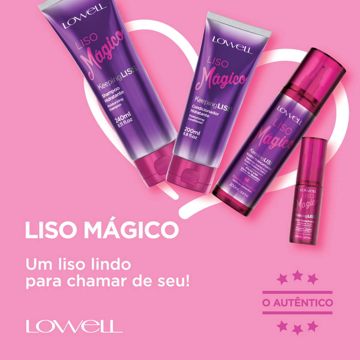 Kit Lowell Extrato de Mirtilo Condicionador Liso Mágico Óleo Capilar e Pour Toi Parfum Cabelo e Corpo (3 produtos)