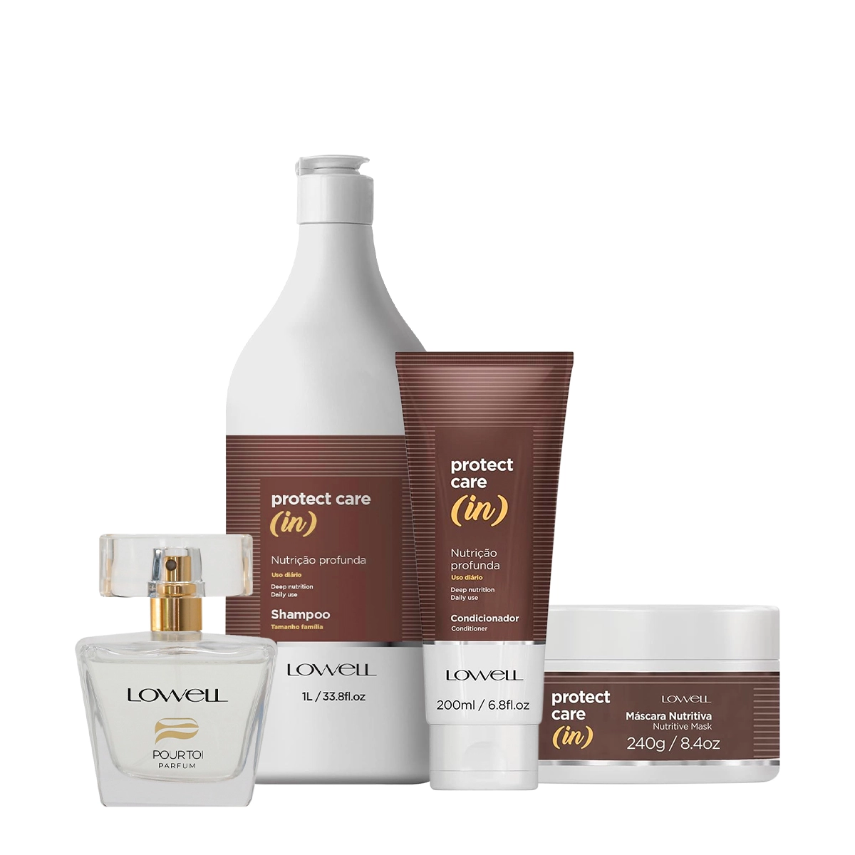 Kit Lowell Protect Care (in) Shampoo L Condicionador Máscara e Pour Toi Parfum Cabelo e Corpo (4 produtos)
