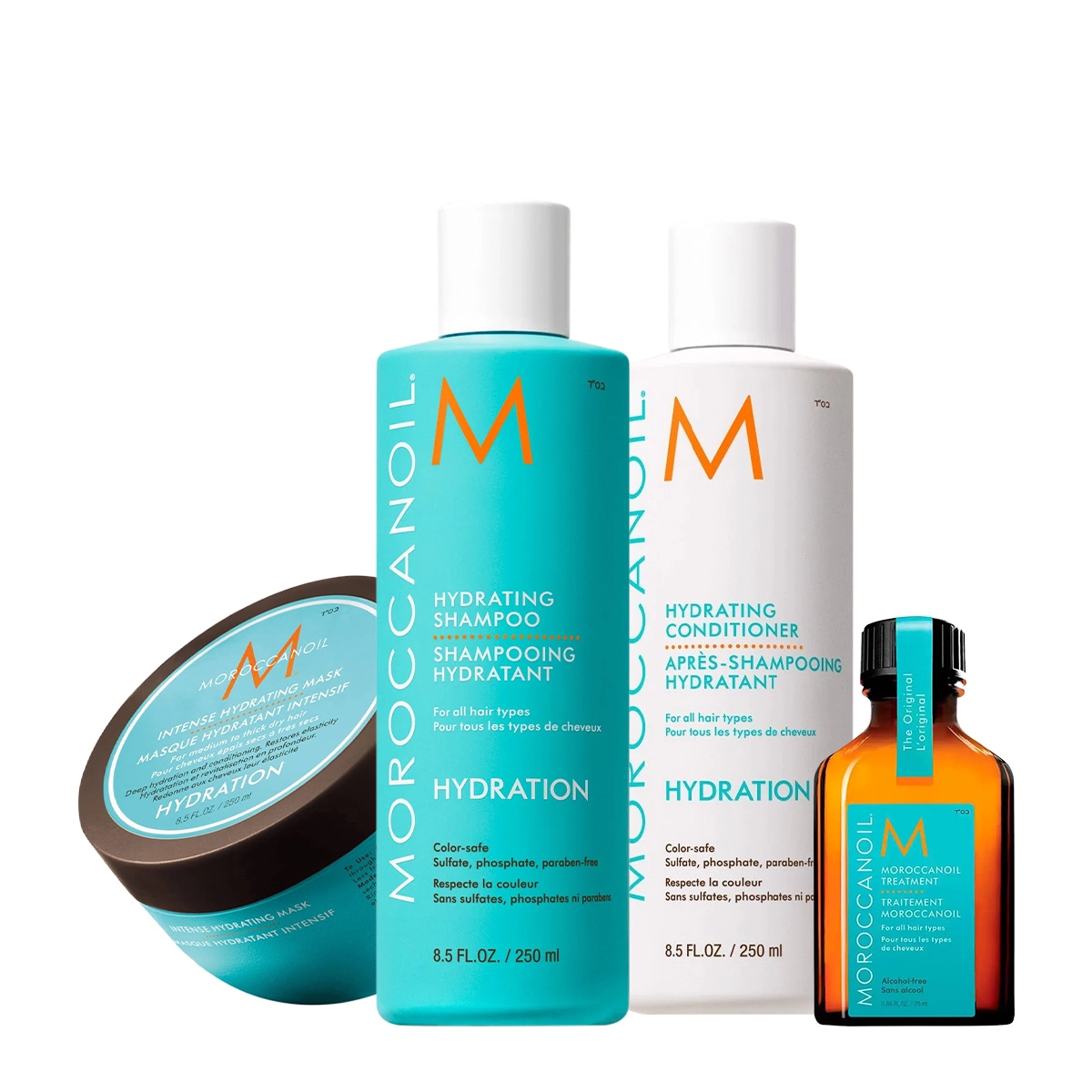 Kit Moroccanoil Hydrating Shampoo Condicionador Máscara Hidratação e Óleo Capilar 25ml (4 produtos)
