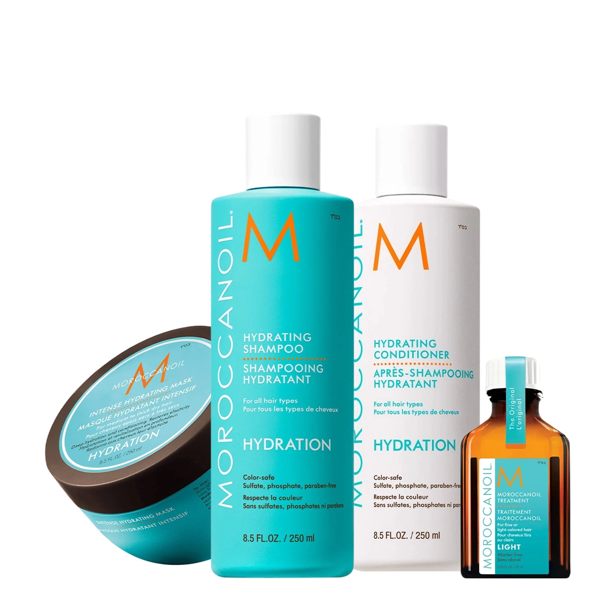 Kit Moroccanoil Hydrating Shampoo Condicionador Máscara Hidratação e Óleo Capilar Light 25ml (4 produtos)