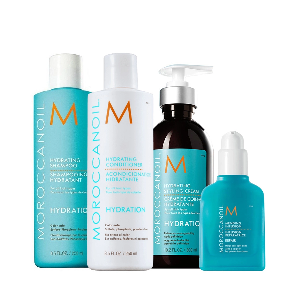 Kit Moroccanoil Hydrating Shampoo Condicionador Styling Cream e Mending Infusion Repair (4 produtos)