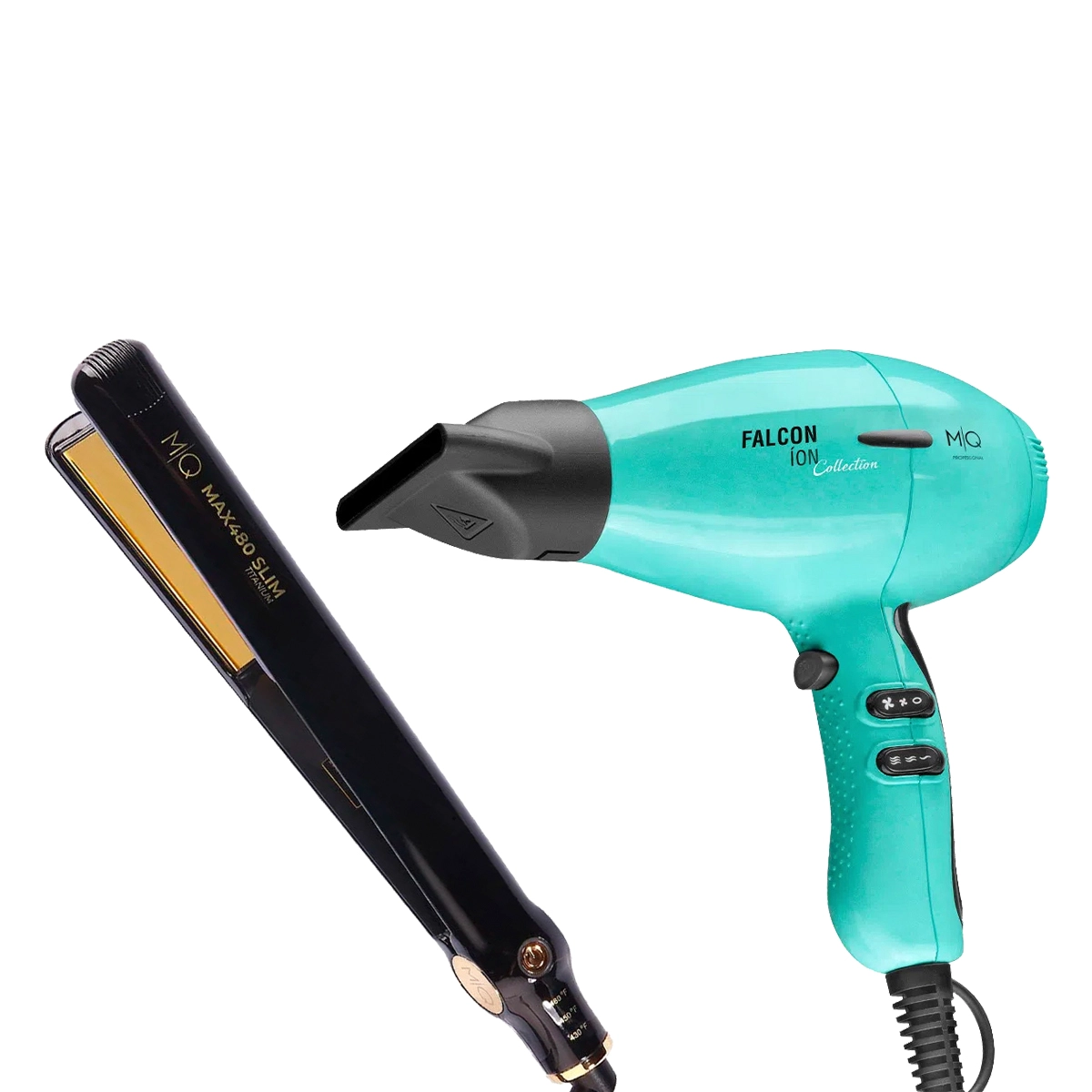 Kit MQ Professional Falcon Acqua Verde 2100W Secador e Max 480 Slim Titanium Chapinha de Cabelo (2 produtos)