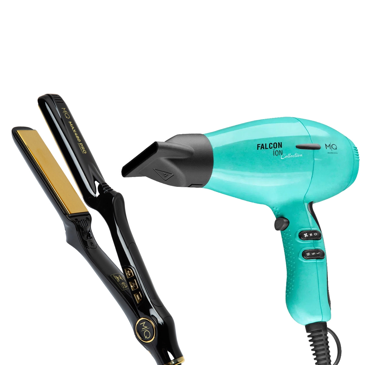 Kit MQ Professional Titanium Pro 480 Prancha e Falcon Acqua Verde 2100W Secador de Cabelo 110V (2 produtos)