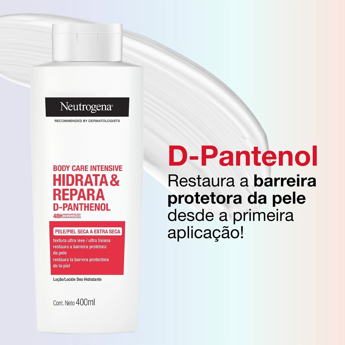 Neutrogena Body Care Intensive Hidrata & Repara - Hidratante Corporal 400ml (3 unidades): para peles secas e ressecadas, oferece proteção profunda e hidratação intensa por 48 horas. Enriquecido com glicerina, d-panthenol e vitamina B5, sua fórmula leve e de rápida absorção, possui ação desodorante, que mantém o corpo confortável ao longo do dia. Proporciona uma textura macia, nutre e restaura a barreira protetora desde a primeira aplicação. Conselho de Aplicação